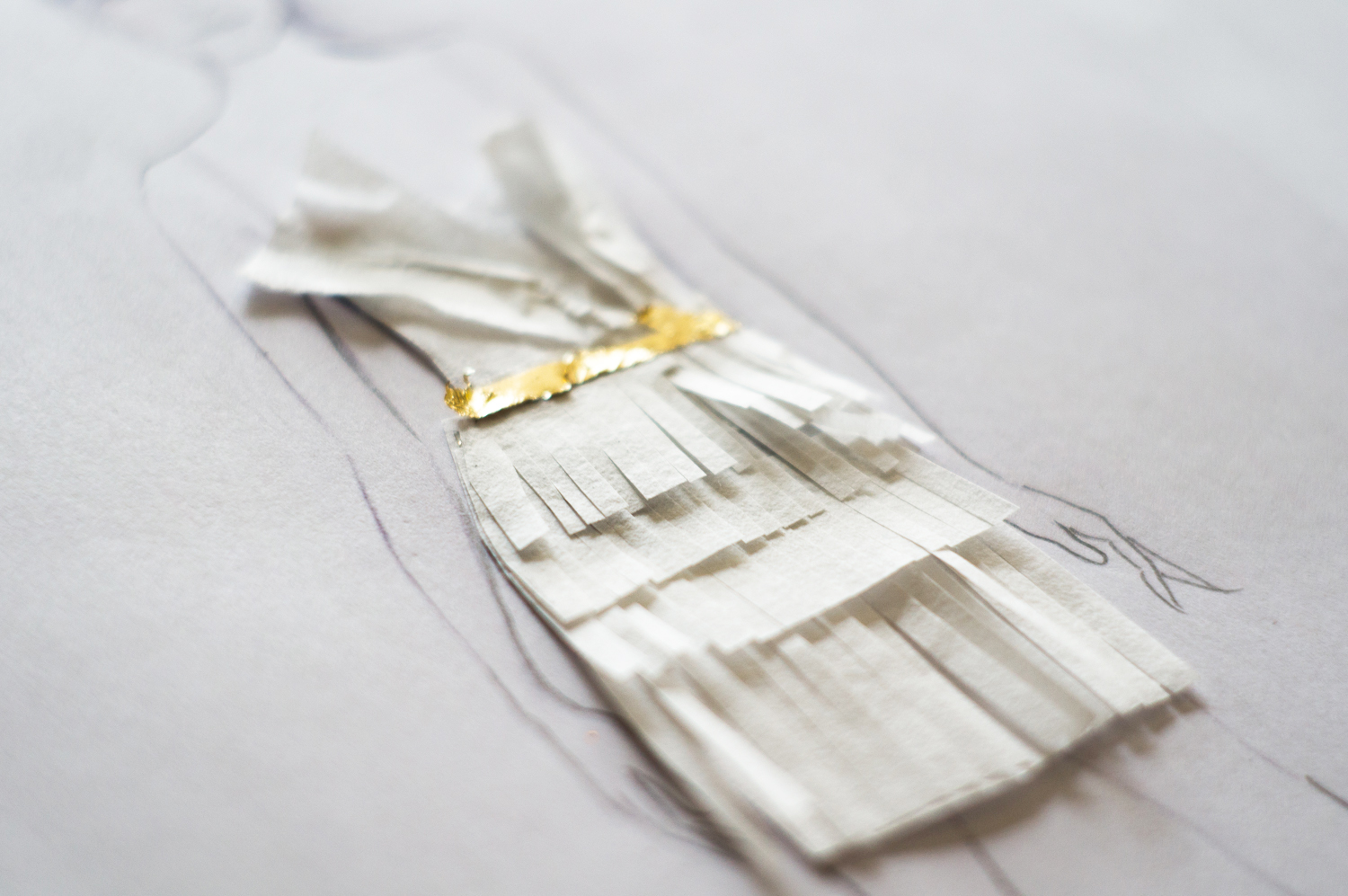A Sketch a Day 323: Flapper Fringe August 8, 2014 Hand-snipped fringe and a little bit of gold leaf. I love this handmade paper for its translucency and molding qualities- it’s almost like taffeta. a sketch a daybridalbridebridesdesigndrawingdressdressesfashionillustrationsketchsketchingwedding Leave a comment Share