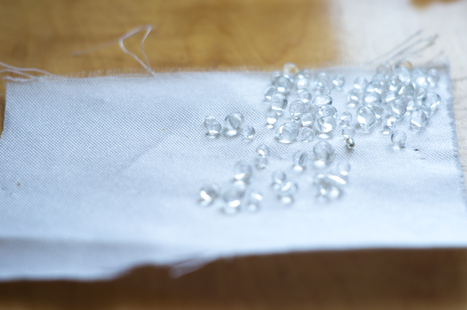 First up- clear glass beading on mikado. I love these beads because they look like water droplets.